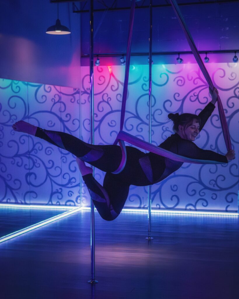Aerial Bombshell’s resident yogi, Susan, has been a part of the studio’s community since January 2019. Having received her 200-hour yoga teaching certification, she loves being able to share intentional and mindful movement with her fellow Bombshells. Her focus on sport-specific recovery and flexibility in her Yoga for Bombshells class helps students to feel more positive and empowered after attending a class.